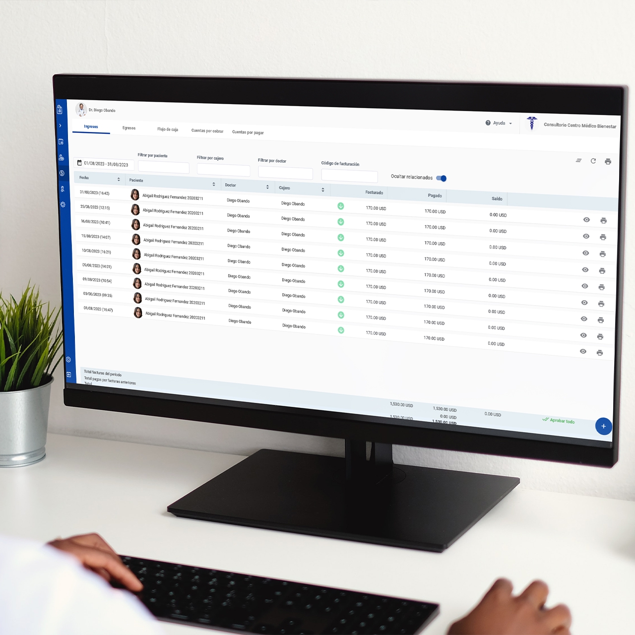 HCMedic App ofrece una sólida herramienta de finanzas que eficazmente gestiona la parte económica del centro médico. Esta herramienta permite un seguimiento detallado de los ingresos del centro médico, lo que facilita la toma de decisiones basadas en datos concretos. Puede realizar un seguimiento por lapsos de tiempo específicos, filtrar los ingresos por paciente, cajero, doctor o código de facturación, lo que brinda una visión completa y detallada de la entrada de recursos.